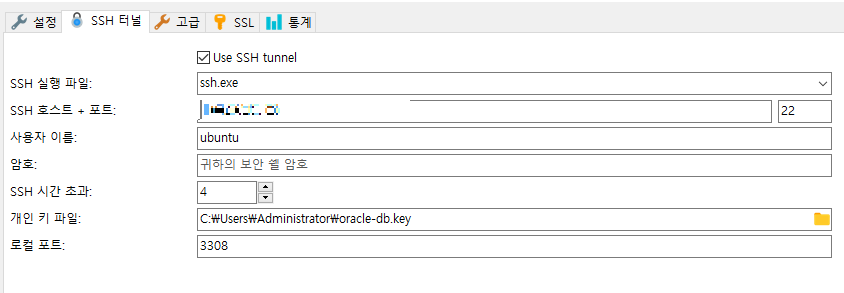(체크) Use SSH tunnel