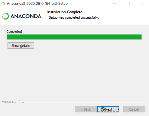 다운로드 한 파일을 실행하여 Anaconda를 설치한다.