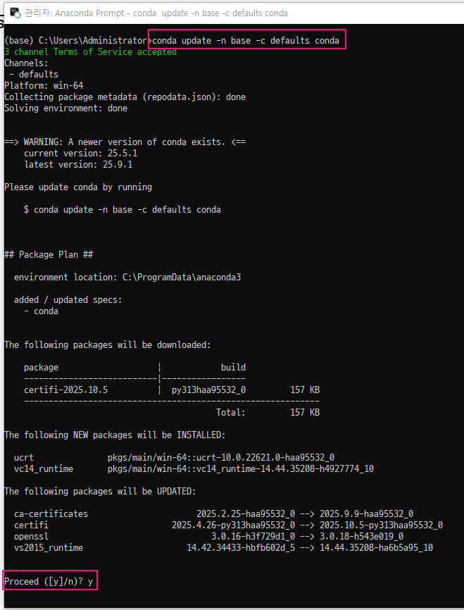 Anaconda Prompt에서 아래 명령어를 실행하자.