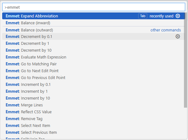 Emmet: Expand Abbreviation 을 선택하면 Emmet 강제 실행이 된다.