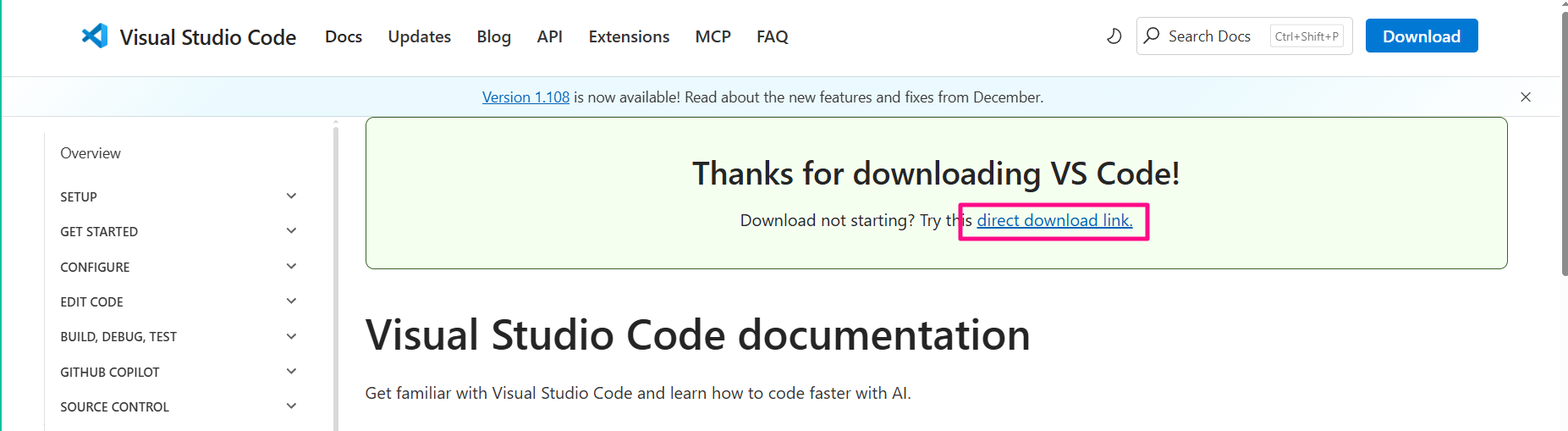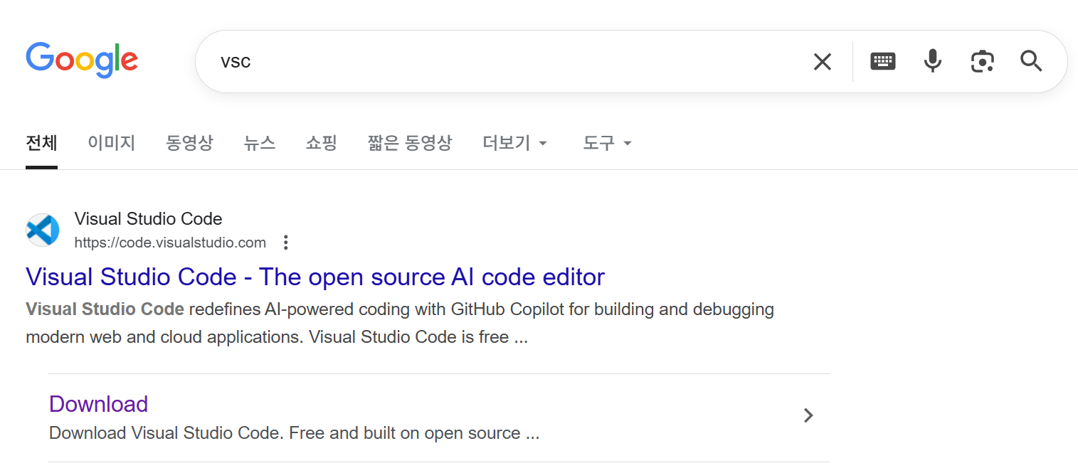 구글에서 vsc 검색하고 Download를 클릭한다.