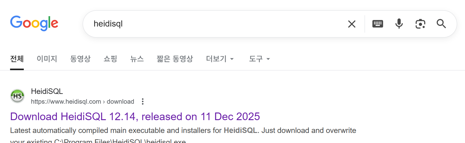 구글에서 "heidisql"을 검색합니다. "Download HeidiSQL 12.14...."을 클릭합니다.