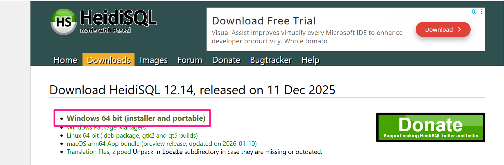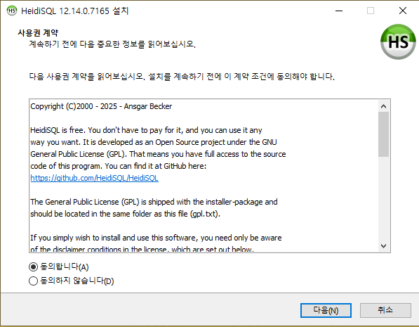 2026-01-12 기준, HeidiSQL 12.14 버전 설치