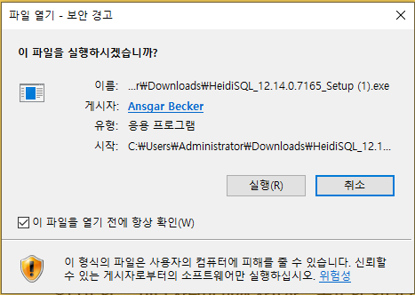 아래로 스크롤을 내려 "HeidiSQL 12.14.0_Setup.exe" 클릭하여 다운로드한다.