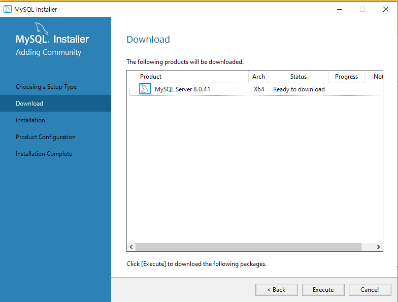 "Execute" 버튼을 클릭하여 설치에 필요한 파일을 다운로드한다.