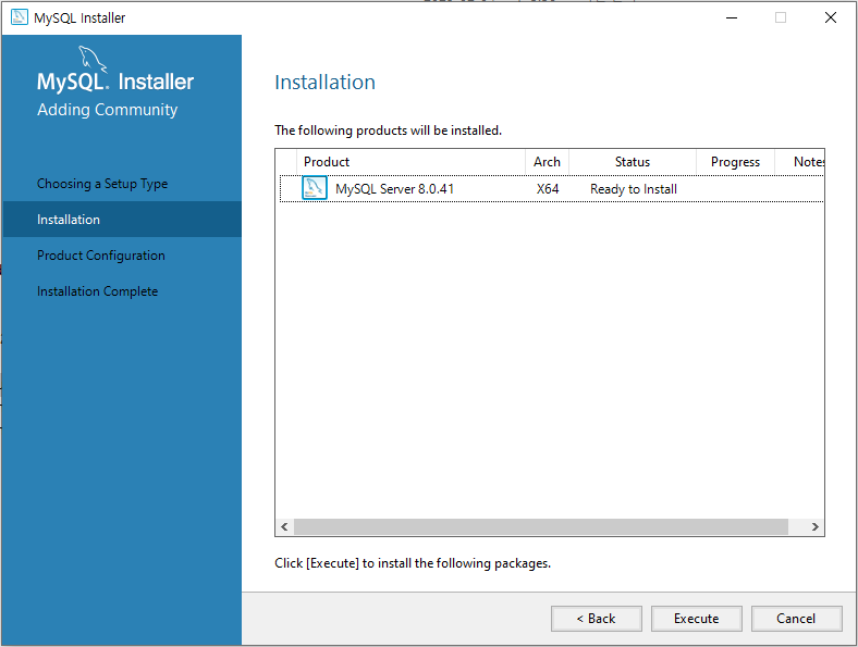 "Execute" 버튼을 클릭하여 설치에 필요한 파일을 다운로드한다.