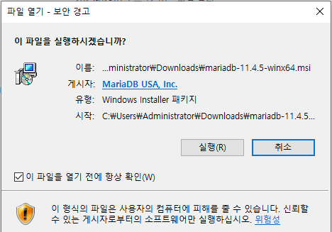 (2025.04.14 기준) 위 이미지를 참고하여 안정화 버전인 11.4.5 버전을 선택하고 [Download] 버튼을 클릭한다. 다운로드가 완료되면 파일을 실행한다.