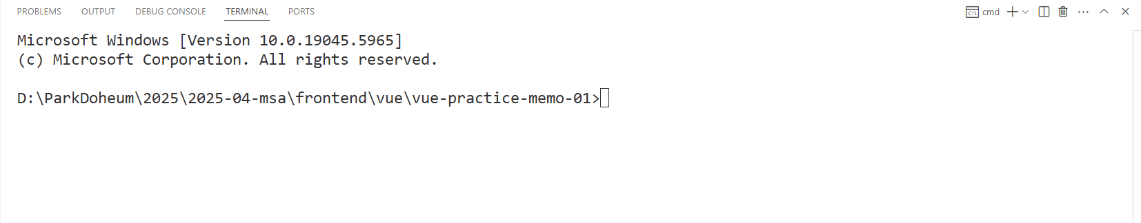 VSC 메뉴 View > Terminal 선택 ( 단축키 Ctrl + ` )