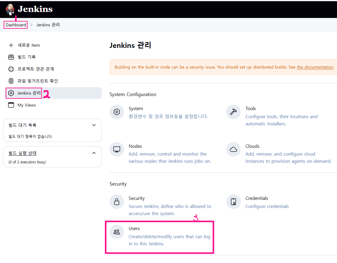 Dashboard > Jenkins 관리 > Users