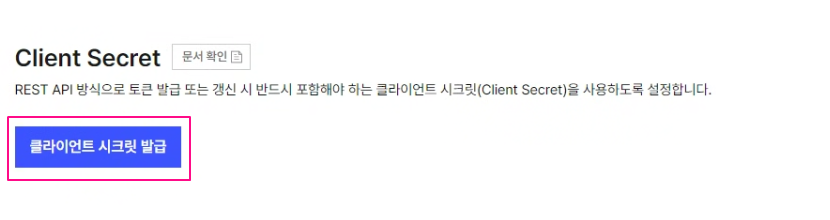 스크롤을 내리면 "Client Secret" 박스가 나타난다. [클라이언트 시크릿 발급] 버튼을 클릭.