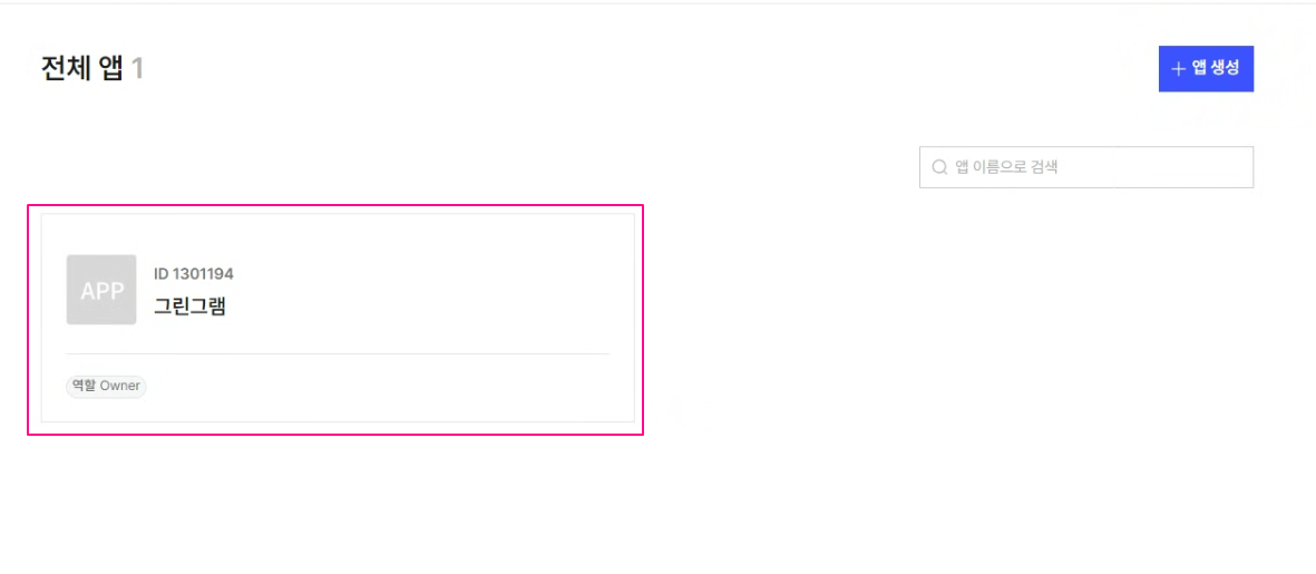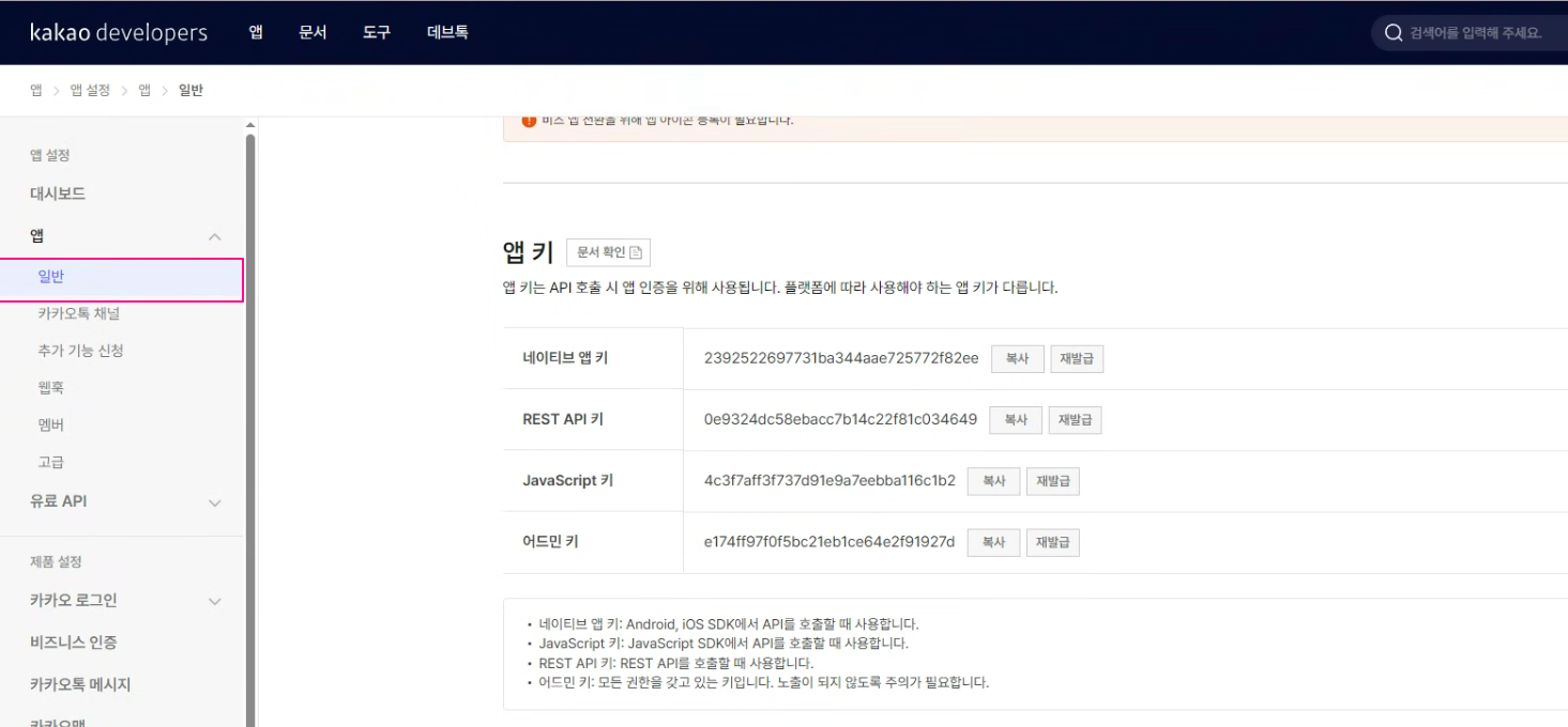 스크롤을 내리면 "앱 키" 박스가 나타난다.