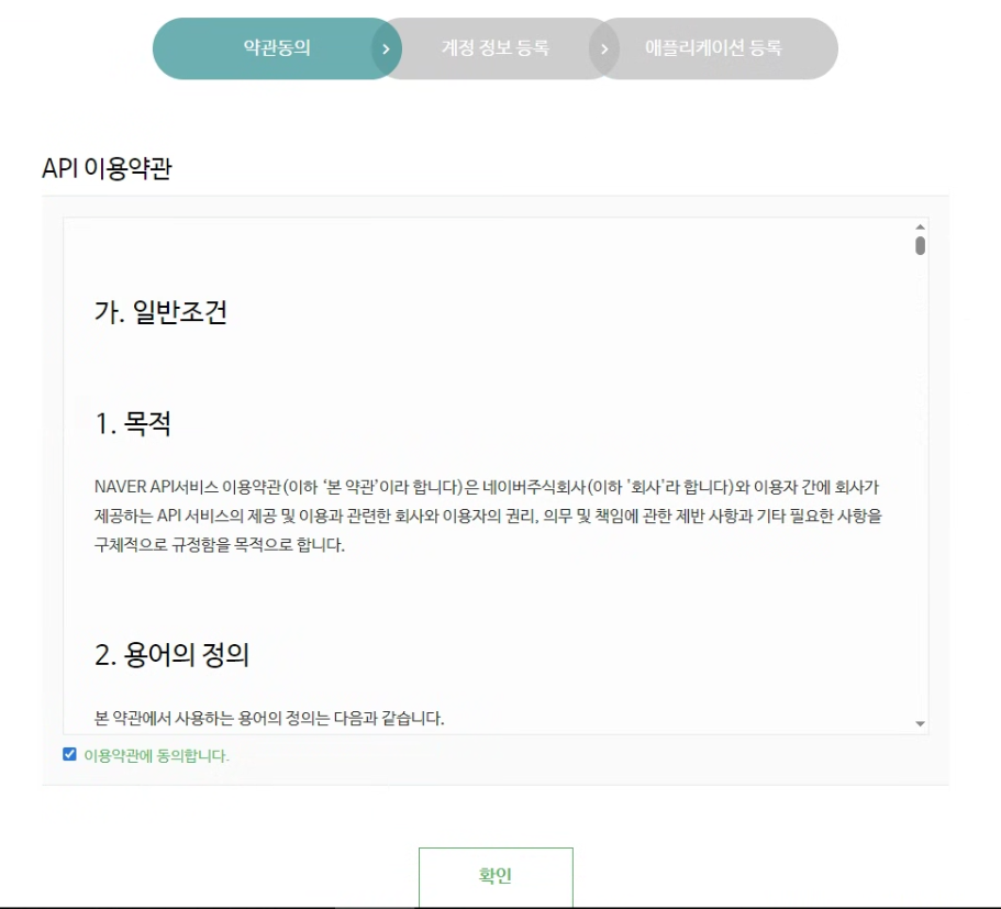 처음 이용하면 이용약관 동의 화면이 나온다. 동의하고 넘어간다.