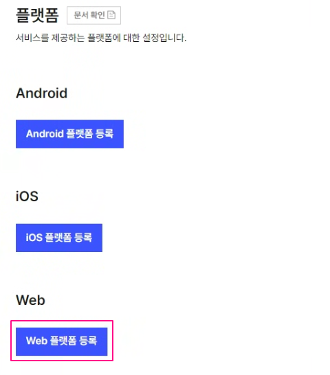스크롤을 내리면 "플랫폼" 박스가 나타난다.