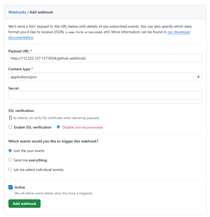 Which evnets would you like to trigger this webhook?: (select) Just the push event.