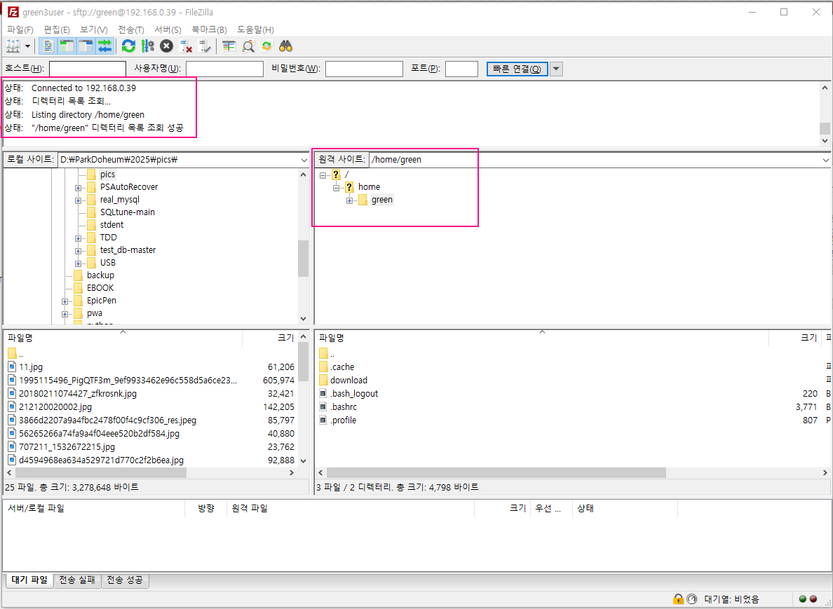 /home/green/download 경로가 파일 업로드 Root 경로이다.