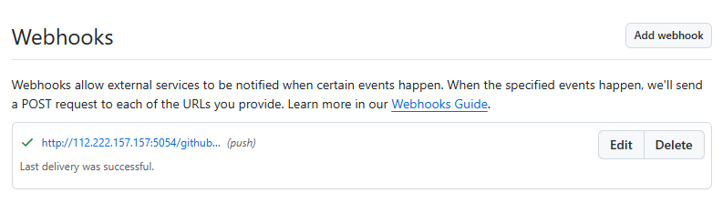 모든 repository를 webhook 작업을 해주어야한다. 프로젝트를 push해서 main branch가 수정되면 CI/CD가 작동된다.