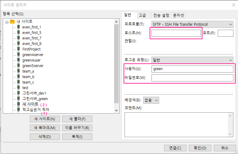 [ 새 사이트 ] 메뉴를 클릭, 사이트 이름 변경