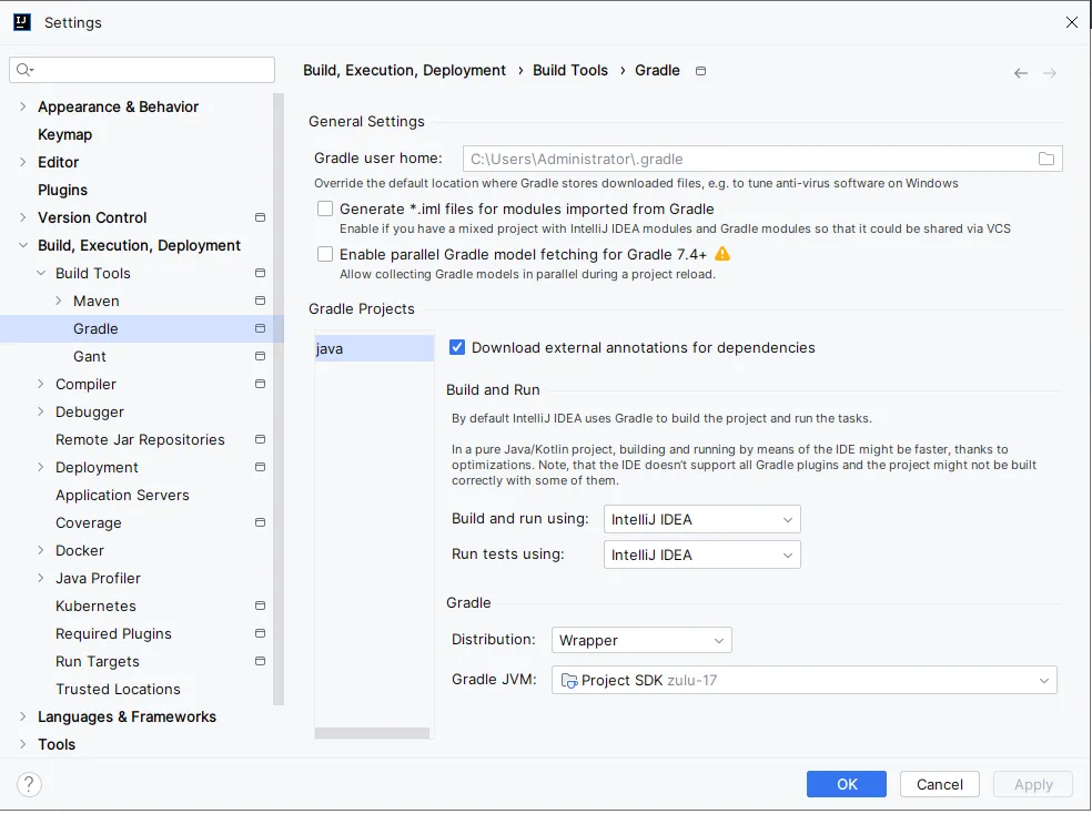 Build and Run 박스에서 “Build and run using”, “Run tests using” 속성의 값을 “IntelliJ IDEA”로 변경